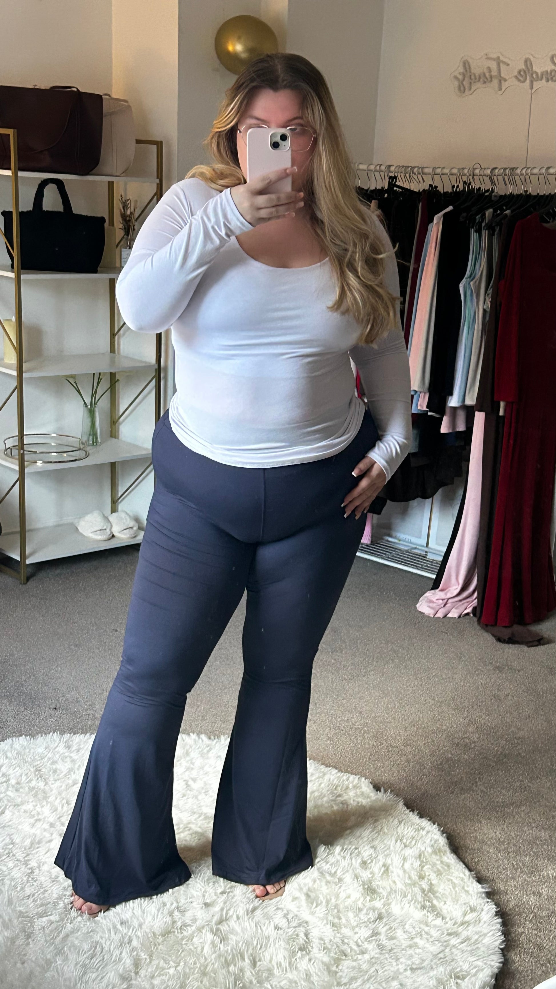 Experience ultimate comfort and style in these High Waisted Soft Touch Flares. The super soft fabric and thin secure waistband make them perfect for all-day wear, while their high waisted design and super stretchy material provide a flattering fit. Elevate your wardrobe with these must-have flares.